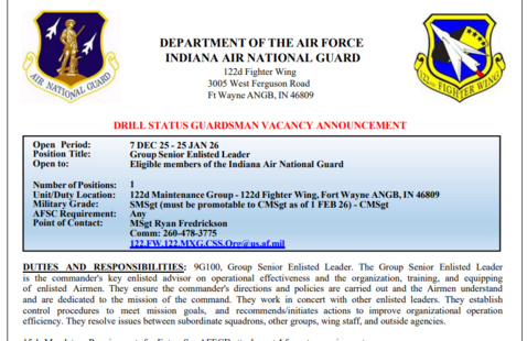 This is a calendar for all of Adjutant General's Office / Indiana National Guard